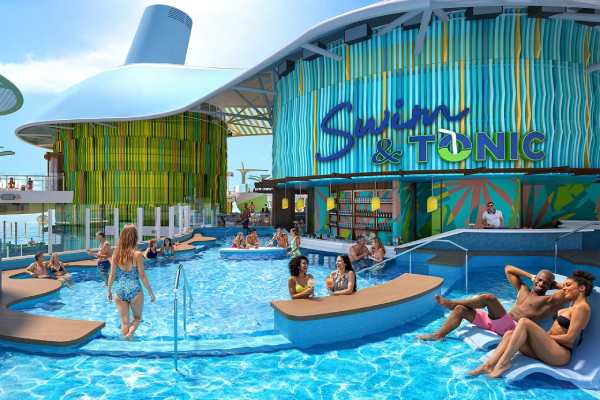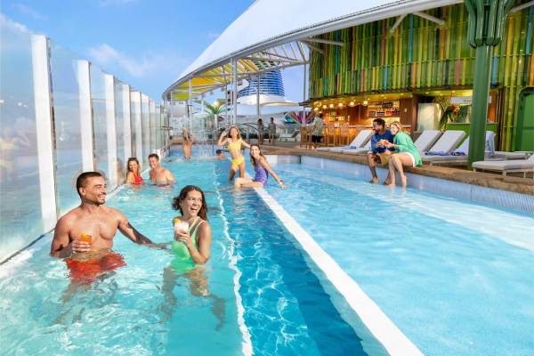 Drift on over to Swim & Tonic — the largest swim-up bar at sea and the first ever in the Royal Caribbean® fleet. This is your go-to for ice-cold drinks and sun-kissed beats. Submerge yourself into the coolest way to sip and grab a seat at the bar, or kick back on one of the in-water loungers for just a splash of the action.