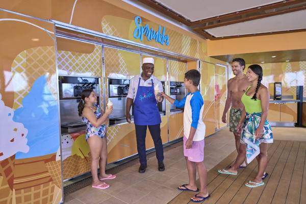 Sprinkles is a poolside favorite serving soft-serve ice cream in a variety of flavors and fun combinations.